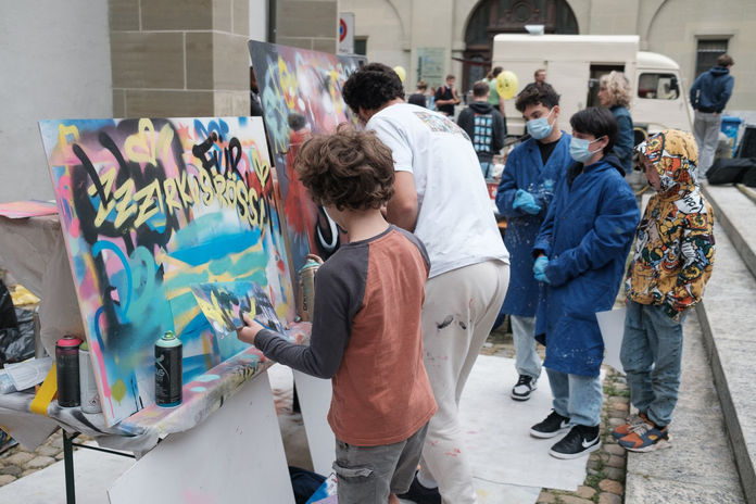 Etwa 900 Besuchende waren in den Kunstworkshops aktiv, bestaunten die Ausstellungsobjekte, spielten auf dem Kornhausplatz und waren am Festakt und der offenen Bühne in der französischen Kirche Bern dabei.